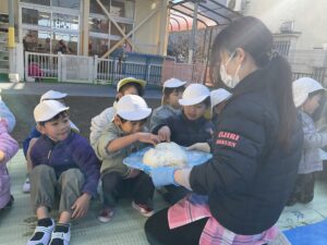 最後にはみんなが付いたお餅をツンツンと触ってみます。